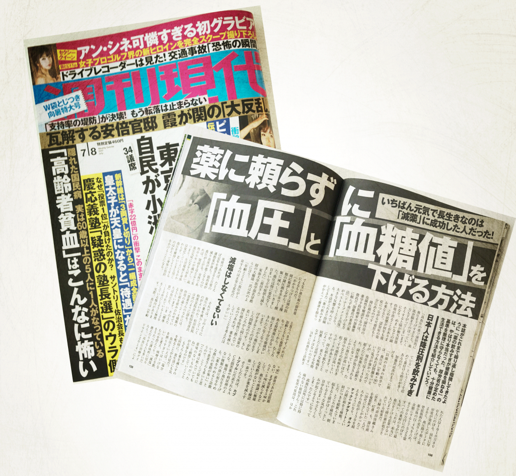 週間現代「薬に頼らず血圧と血糖値を下げる」方法 インタビュー記事掲載