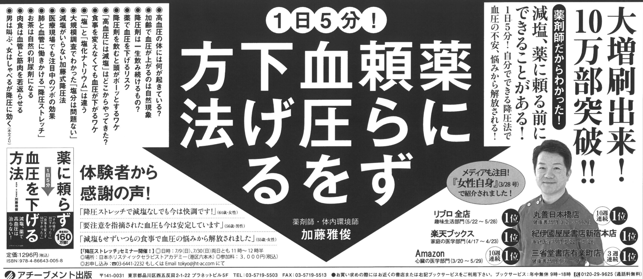 読売新聞「薬に頼らず血圧を下げる方法」掲載「降圧セミナー」開催!